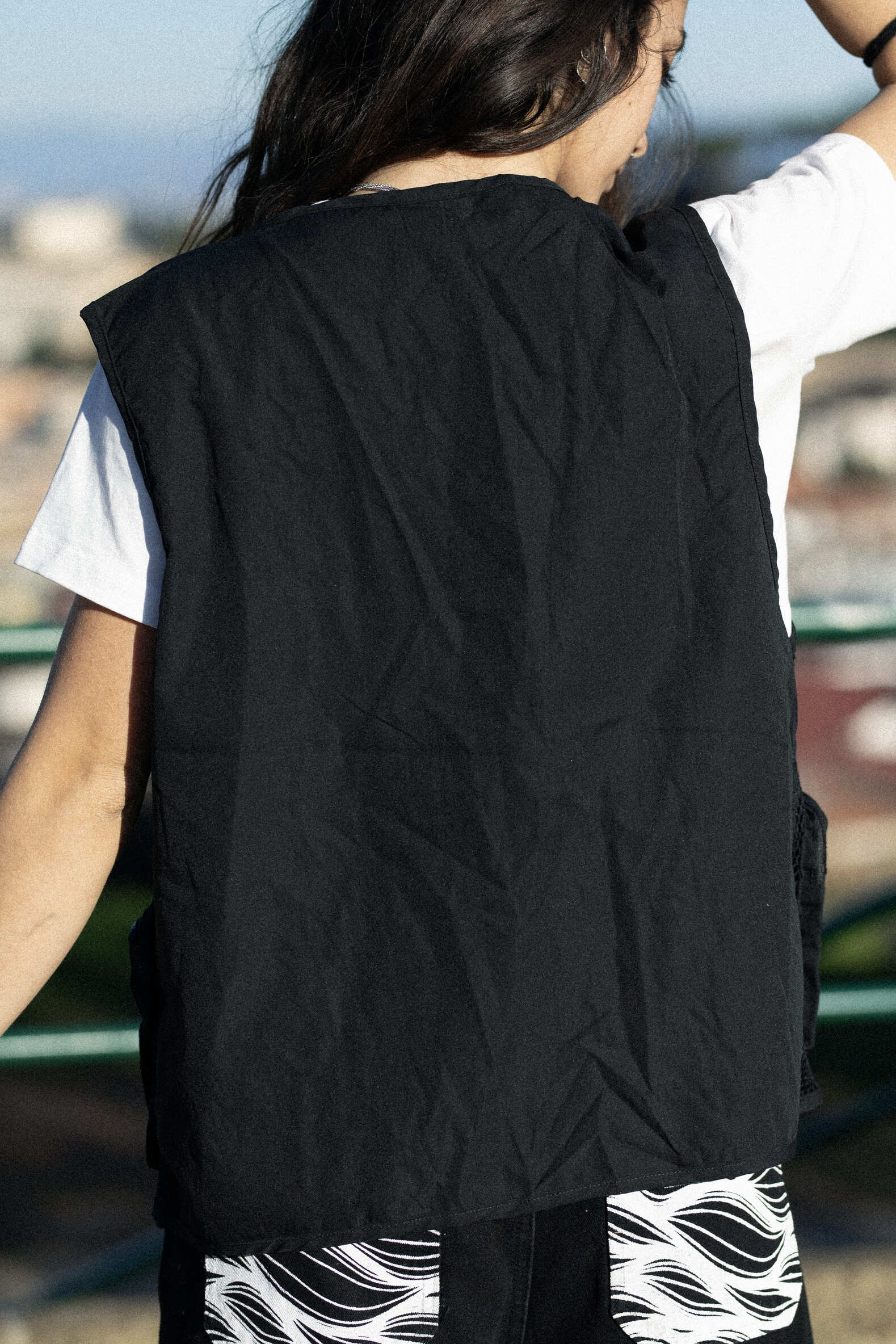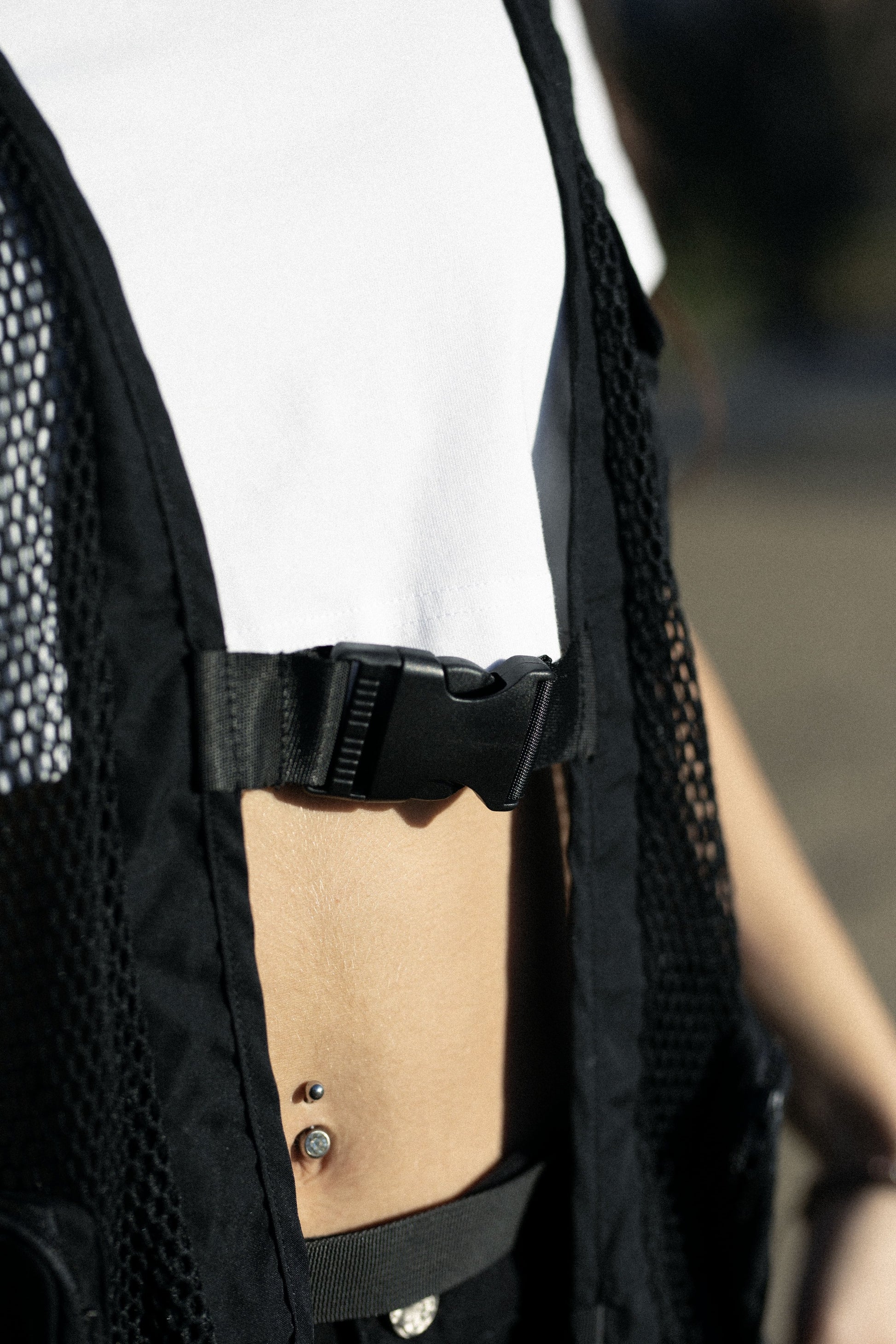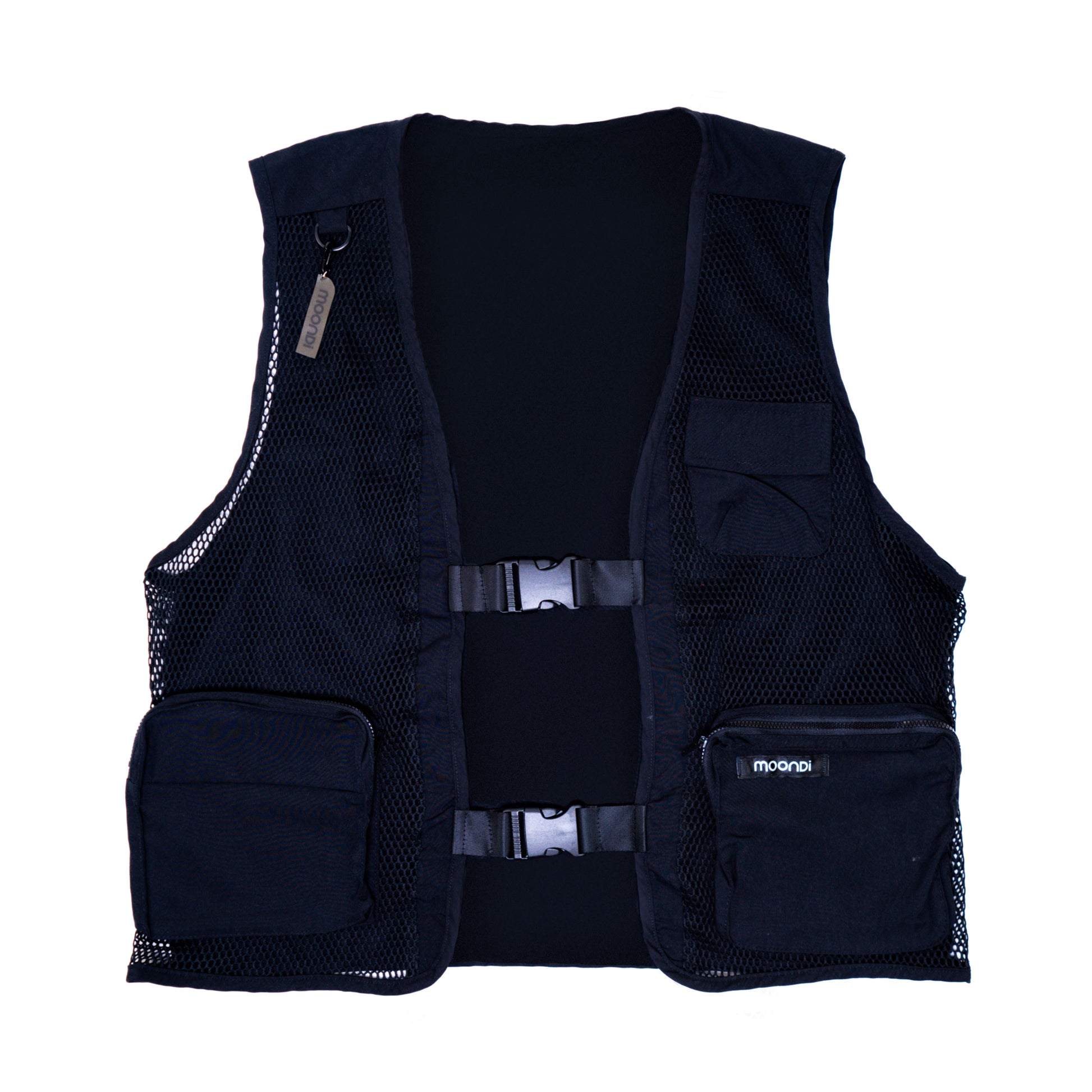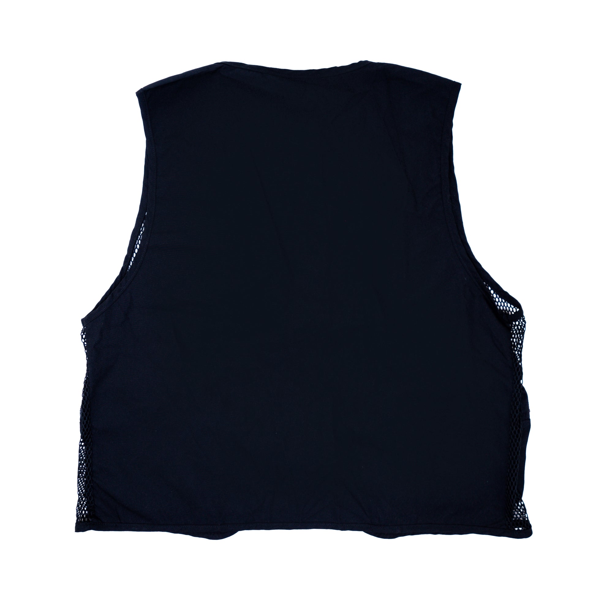 Stay stylish and organized with our unisex UNIQUE & LIMITED Black net vest. Made with net tissue detailing, this vest features multiple pockets for all your essentials and a cool graphic on the back. Perfect for any outing, this vest adds a touch of edginess to your wardrobe, while keeping you effortlessly put-together.