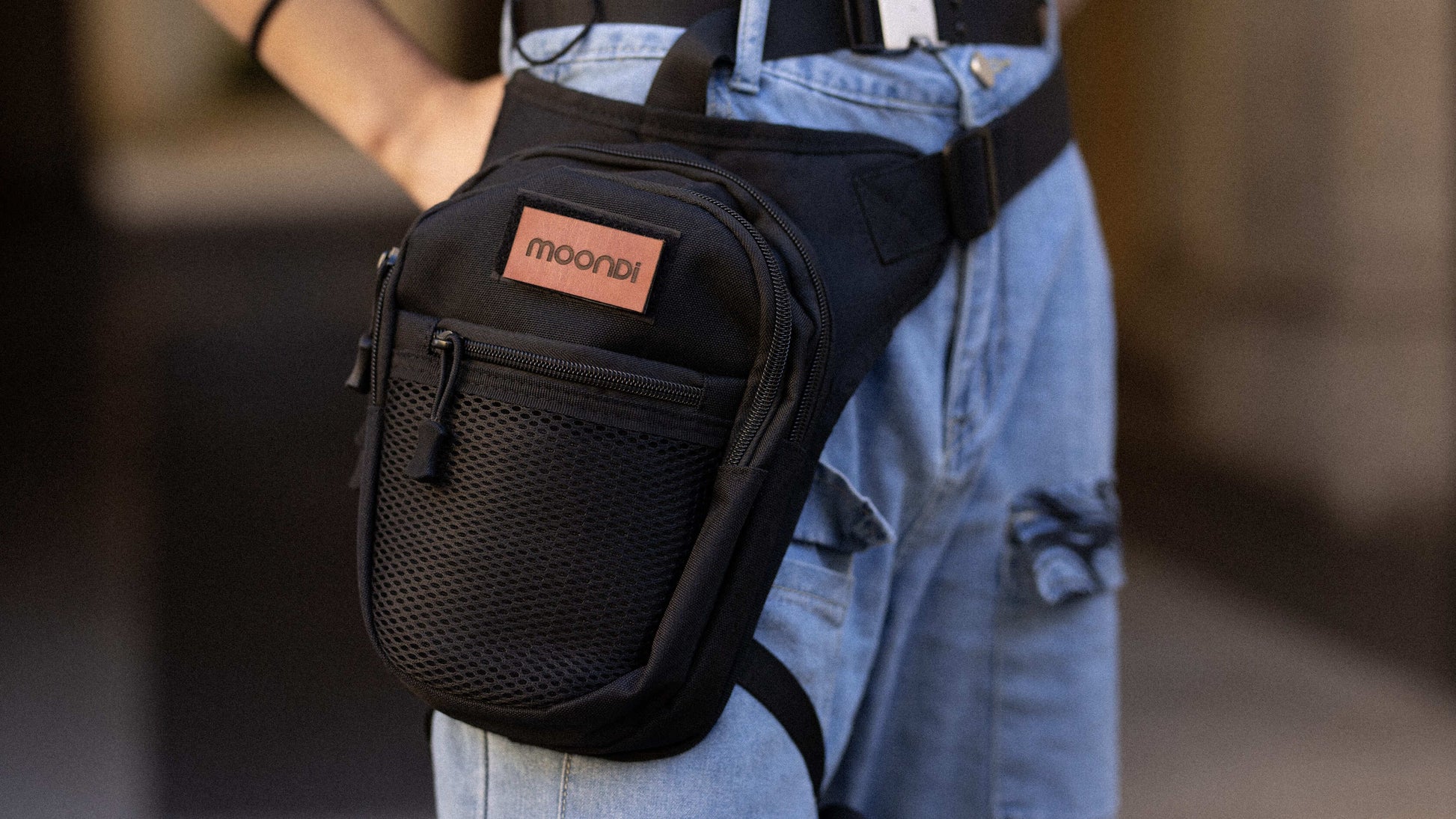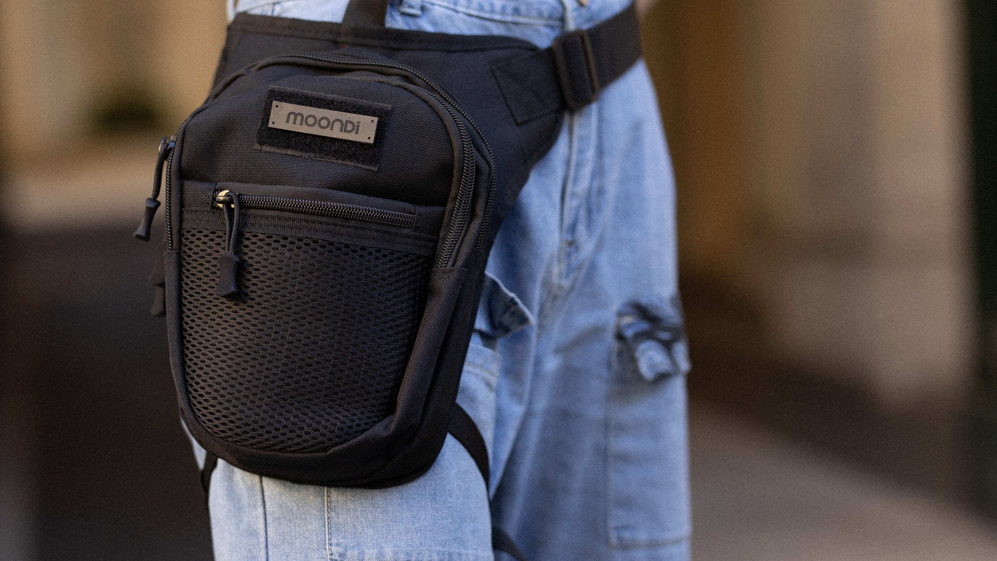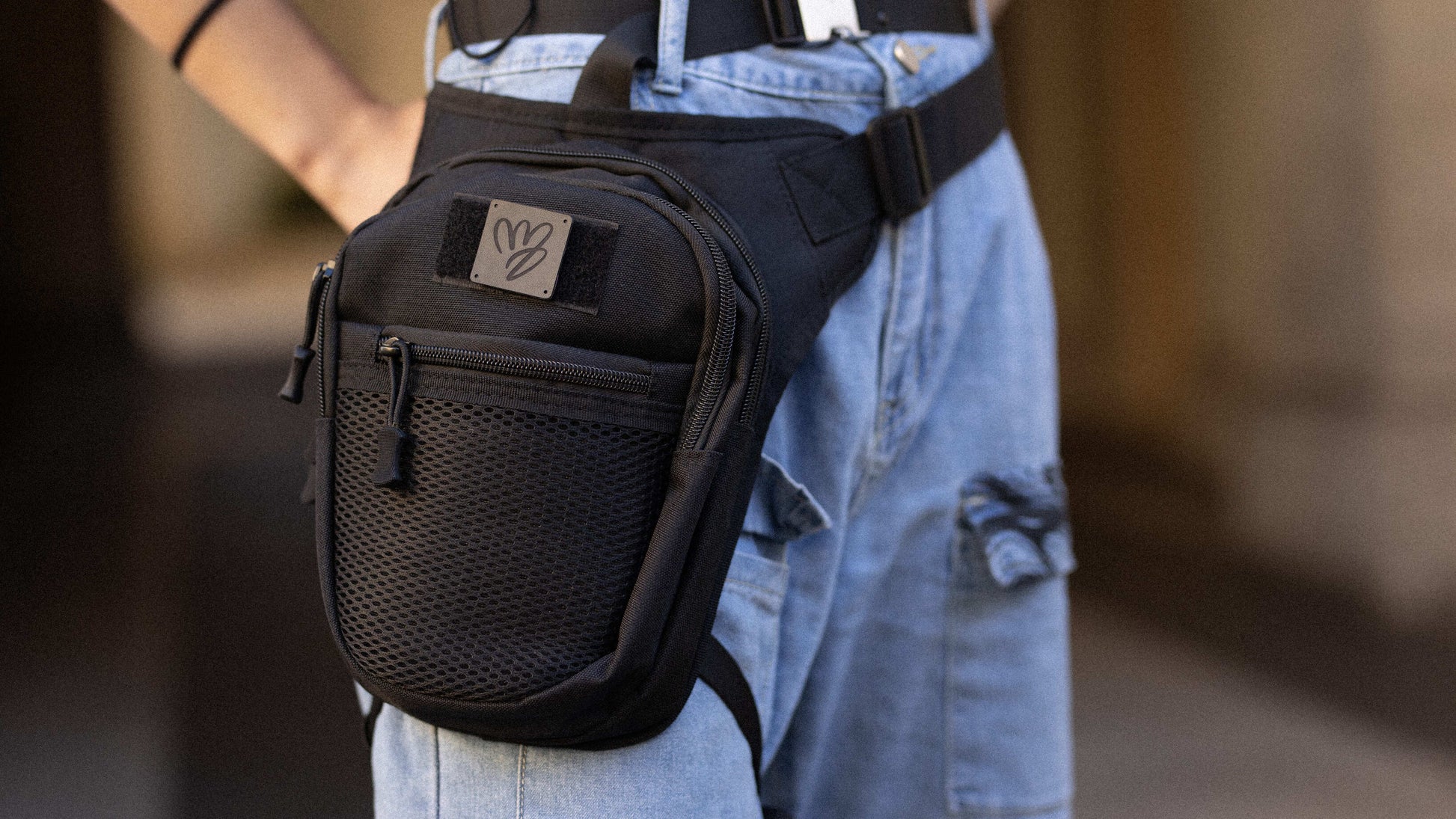 Stay organized and hands-free with our UNIQUE & LIMITED Bumbag Leg. This black bumbag features multiple pockets and an optional leg lace for added versatility. The front velcro allows you to switch between 3 logo labels included in the pack. Keep your essentials close and stylishly secure.