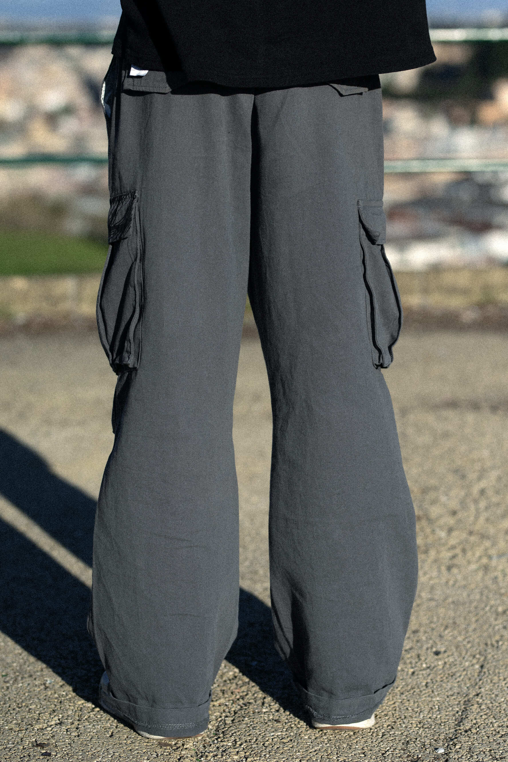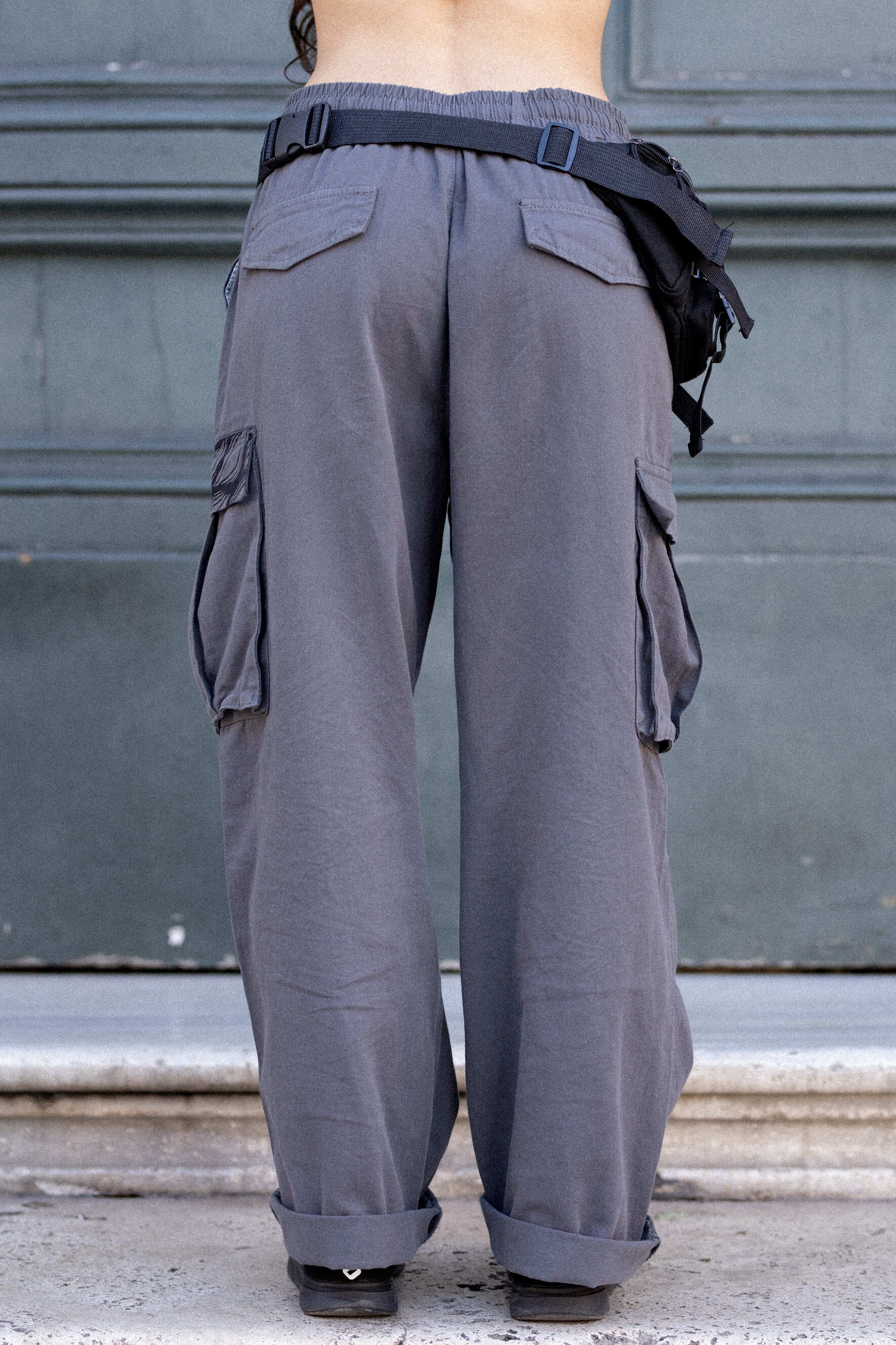 Introducing UNIQUE & LIMITED Grey Cargo, the ultimate blend of style and comfort. Made from 100% cotton with an elastic waist and pockets, this limited edition piece boasts a soft tissue feel. Perfect for everyone, this unisex cargo is a must-have for any wardrobe! Check the size guide at the end of the images to find your fit! The fit is loose.