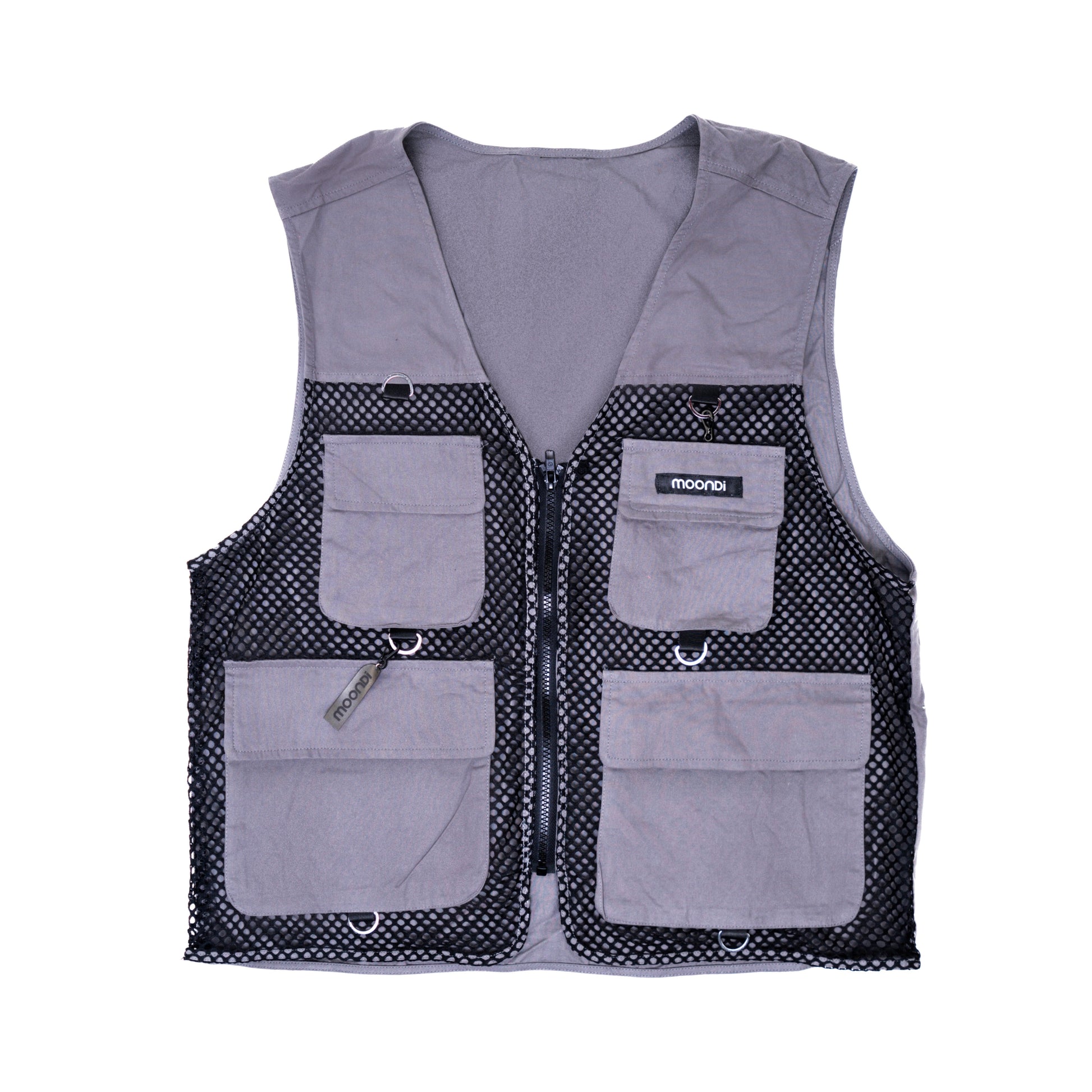 Stay stylish and organized with our UNIQUE & LIMITED Grey net vest. Made with net tissue detailing, this vest features multiple pockets for all your essentials and a cool graphic on the back. Perfect for any outing, this vest adds a touch of edginess to your wardrobe, while keeping you effortlessly put-together.