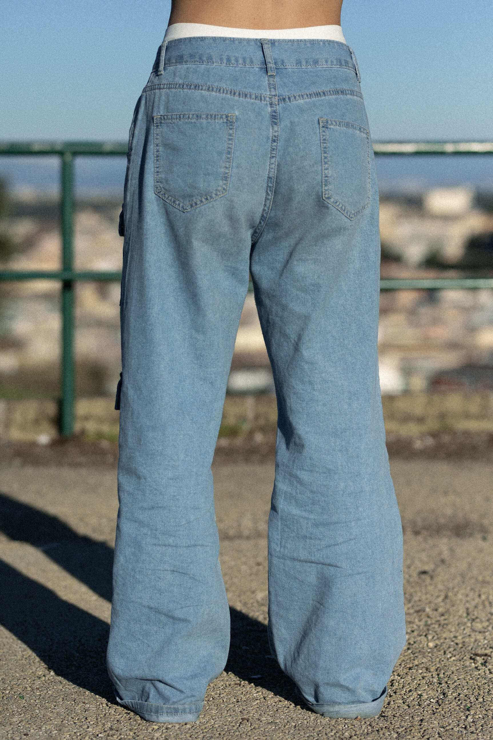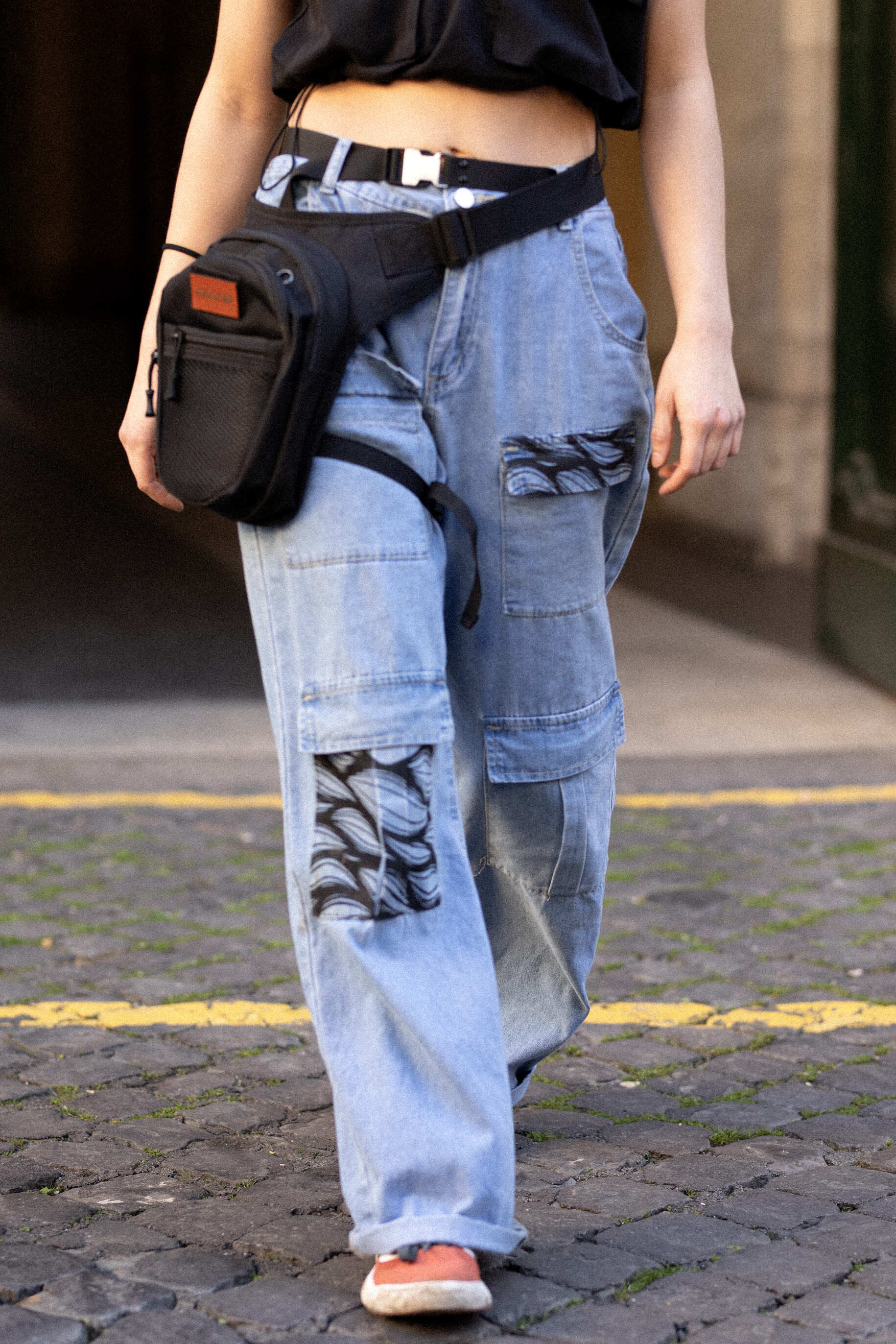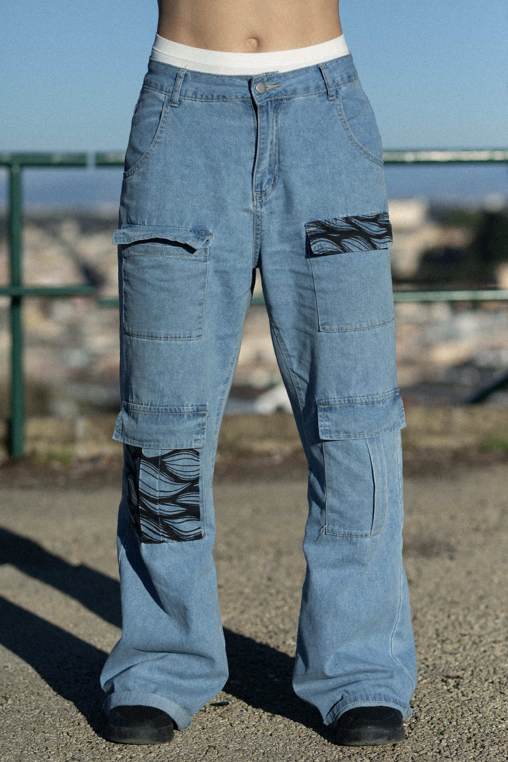 Elevate your style with UNIQUE & LIMITED Jeans Cargodesgned for women. Handcrafted wave graphics adorn the multiple pockets of these high-waisted jeans, adding a unique touch to your look. With soft, comfortable fabric, these jeans provide both fashion and function. Upgrade your wardrobe today! Check the size guide at the end of the images to find your fit!